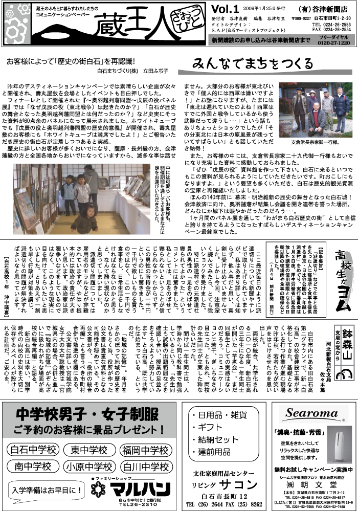 Vol.1 1月25日発行 お客様によって「歴史の街白石」を再認識! |