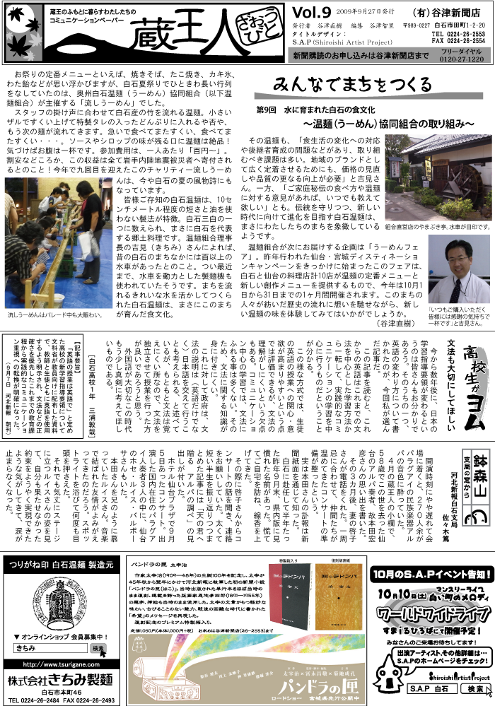Vol.9 9月27日発行 水に育まれた 白石の食文化 温麺(うーめん)協同組合 の取り組み |